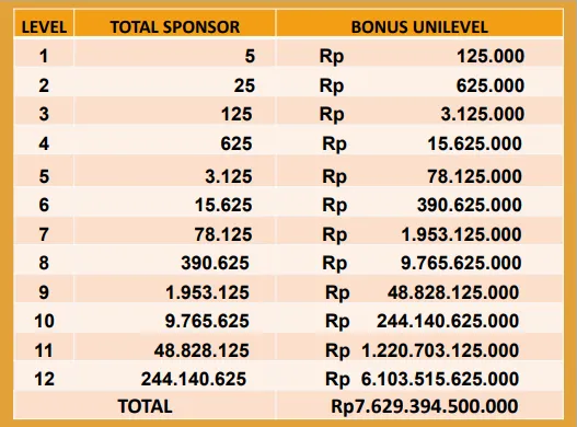 Potensi Pendapatan Unilevel (Simulasi Duplikasi 5×12)